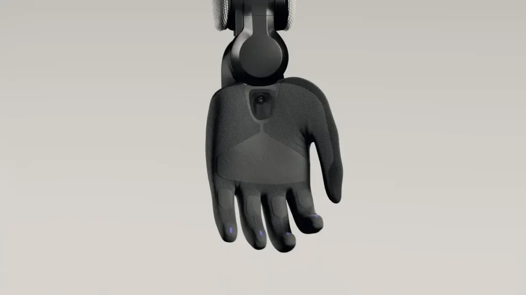 - Sensory Hands: Each hand is sheathed in a glove-like material with visible seams suggesting embedded tactile sensors. Cameras embedded in the palms indicate enhanced object recognition and manipulation, a step toward truly dexterous, human-like interaction.